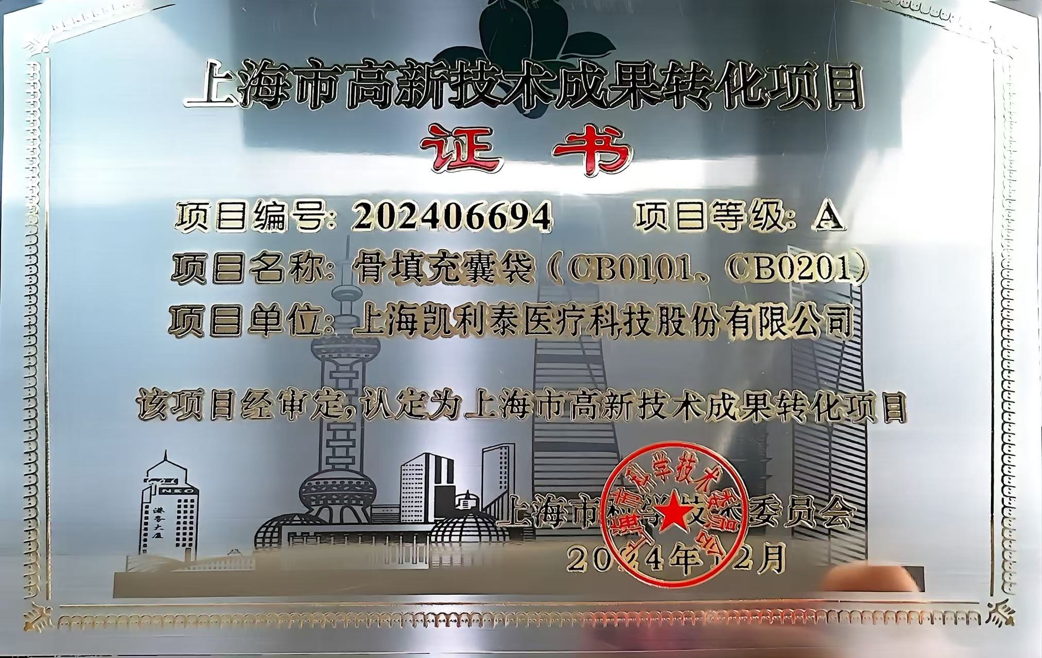 骨填充囊袋产品入选2024年度第二批《上海市创新产品推荐目录》